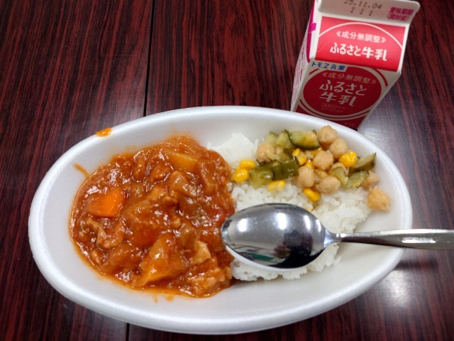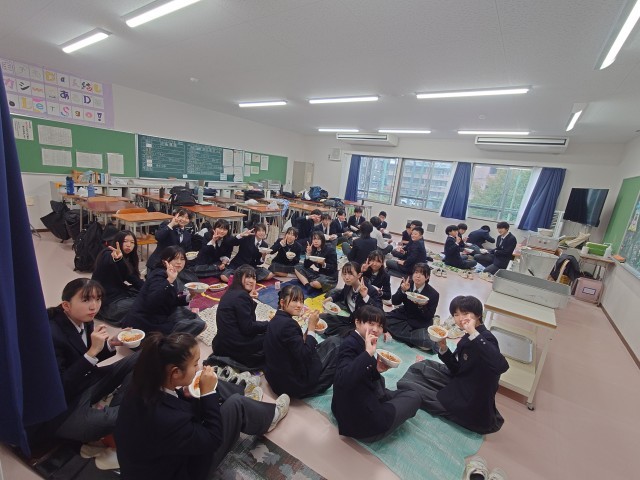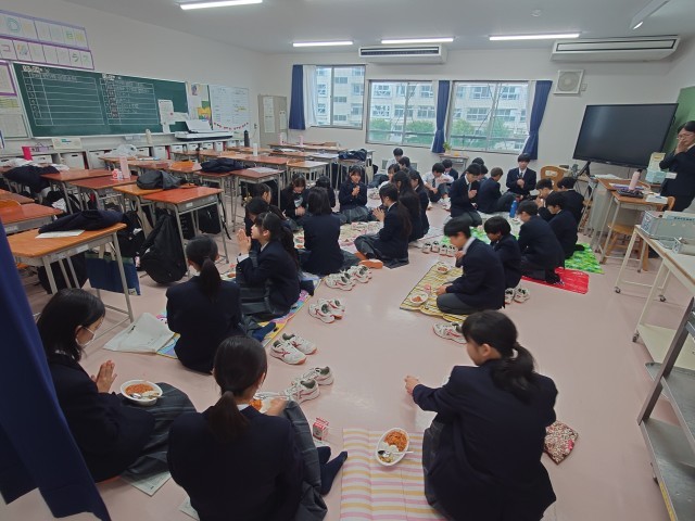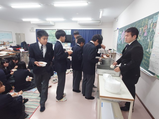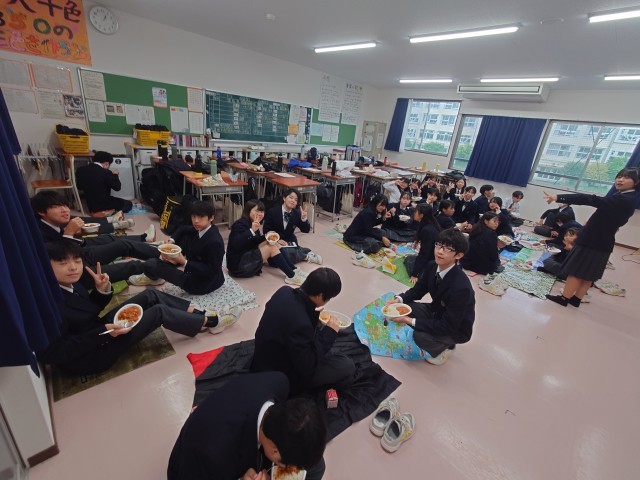 午前中の合唱コンクールが終わり、楽しい給食です。