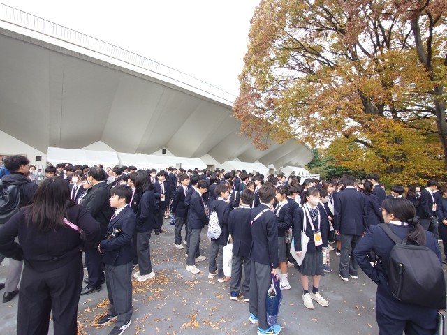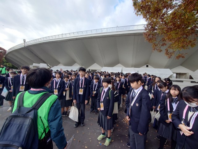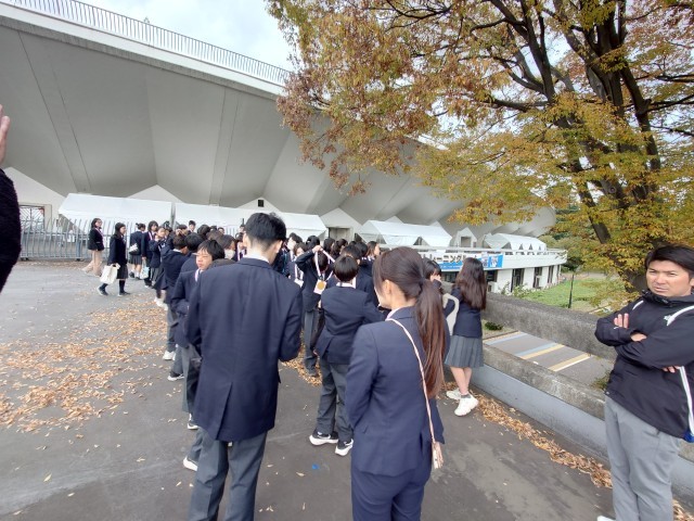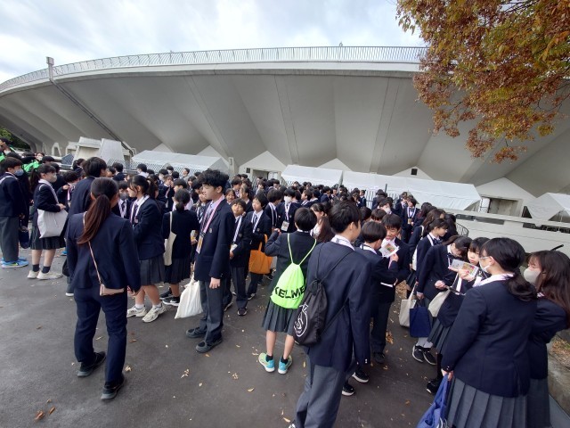 バスを降りて、係りの人に誘導されて、バレーボール会場の体育館へ。
