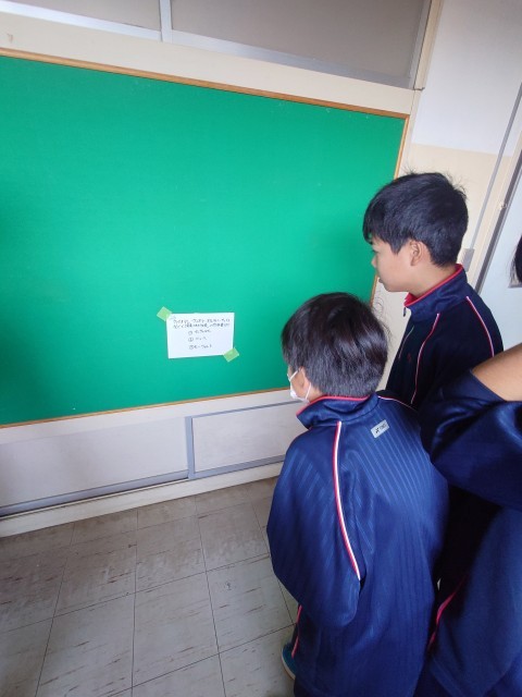 クイズの答えがわかったら、職員室へ。生徒会役員が待っています。