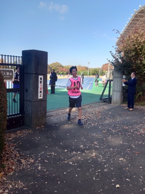 ラストスパート。ゴール!!弦中生が一番にゴールテープを切りました。続々とゴールへラストスパート。