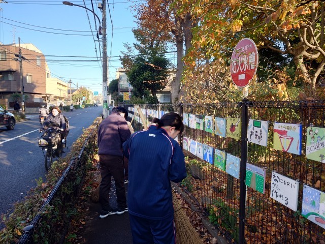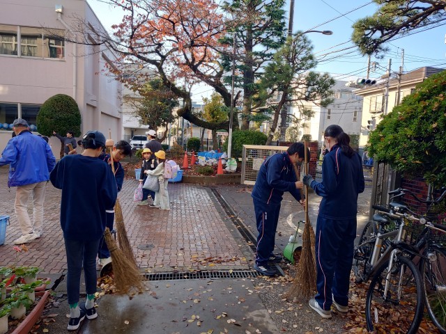 毎年落ち葉の時期に、松丘小学校との交流落ち葉掃きボランティアを行っています。