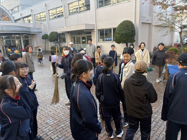 後半小学生とも一緒に落ち葉掃きをして、最後に集合して、お互いに挨拶をして、活動を終えました。
