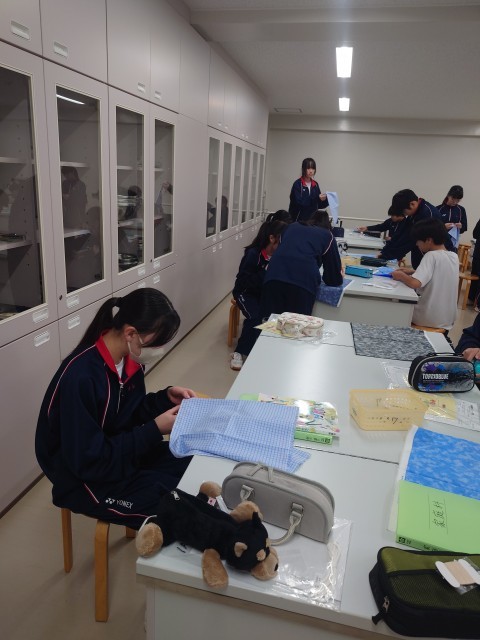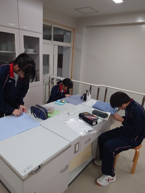針に糸を通して、チクチク細かく裁縫を頑張っていました。