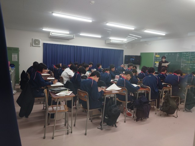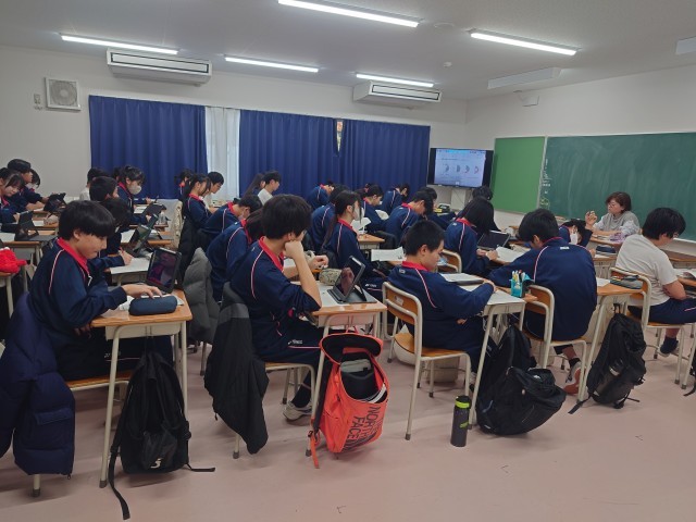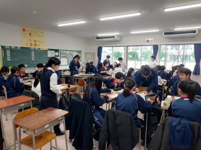 I組体育の授業。三年生は、英語の授業と理科の授業です。いつ見ても、みんな真剣に集中して頑張っています。