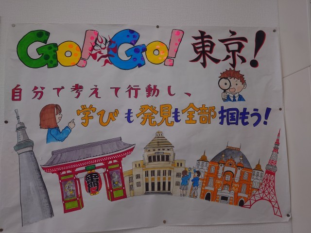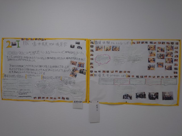 廊下にI組の2年生が作った職場体験新聞と2年生の校外学習のスローガンが掲示してありましまた。