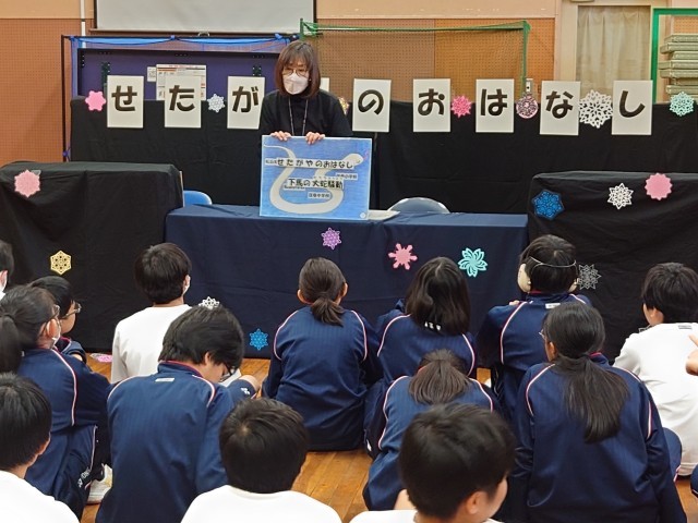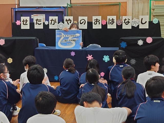今年もボロ市見学に行く前の事前学習として、世田谷お話をしてくださる民話の会の皆さんと、猫仙人、まんまる、チャチャがI組に会いに来てくださいました。