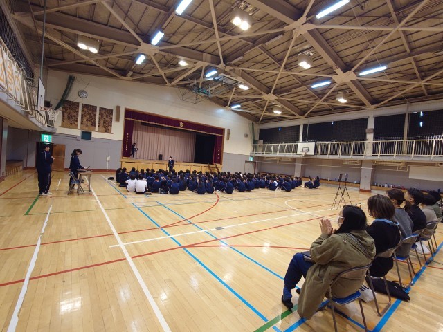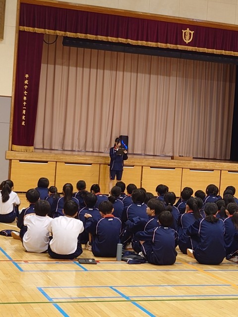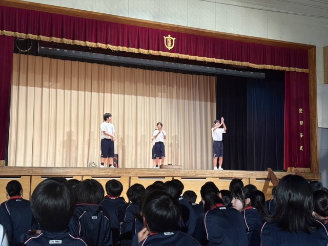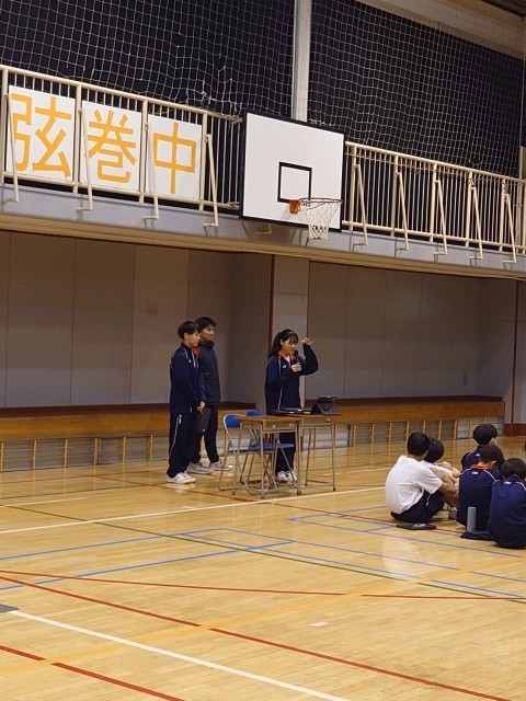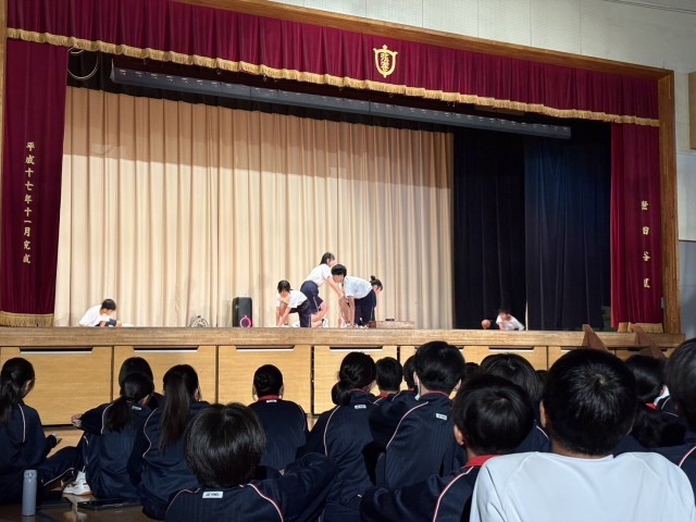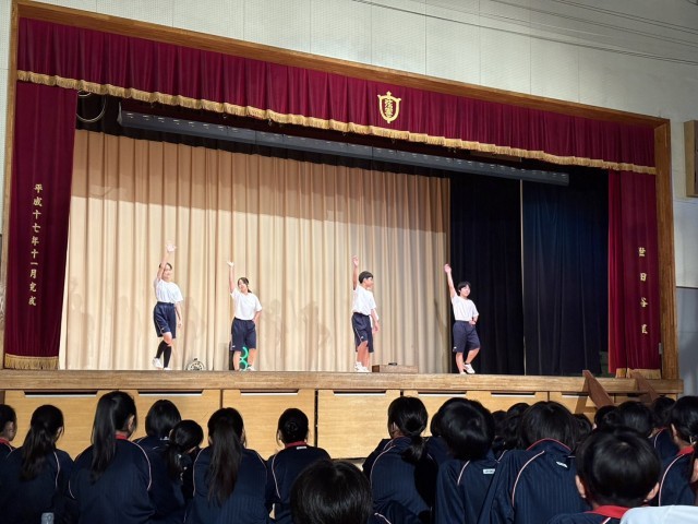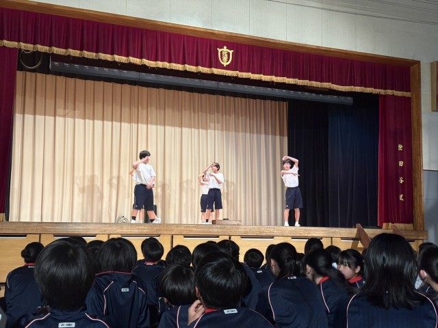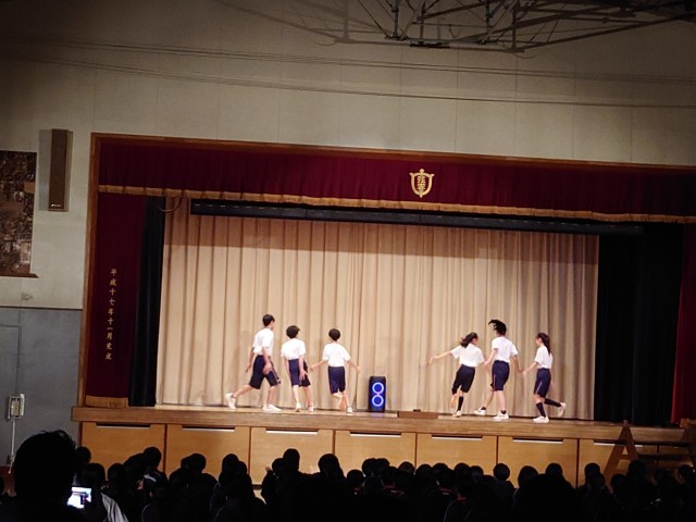 各班ごとに、校歌ダンスの練習、振り付けを考えて踊りA組からです。