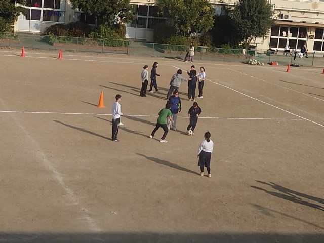 校庭の東側が少し使えませんが、今のところ16日までは、校庭の仮囲いは作られないそうです。