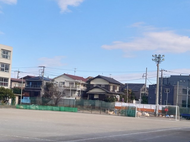 旧校舎の解体準備が進んでいます。 現在、東の校庭の高い網の塀が取り壊されています。