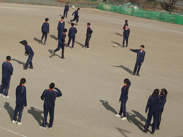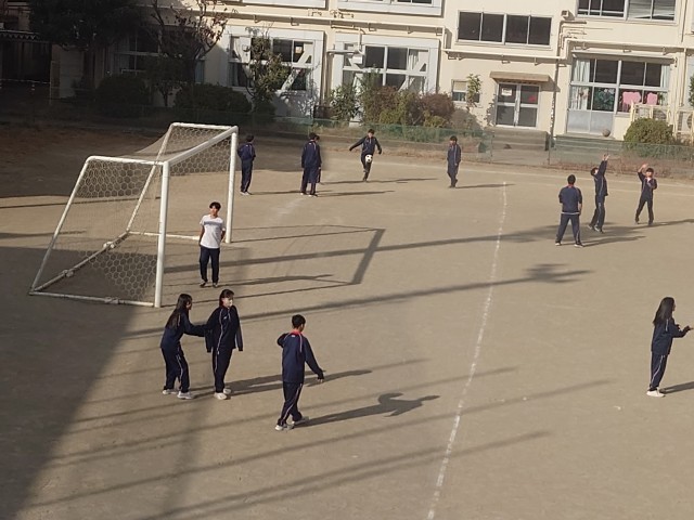 この状態を楽しめるのは最後の1週間です。子どもたちは、サッカーボール等、工事や民家に行かないように気をつけて遊んでいます。
