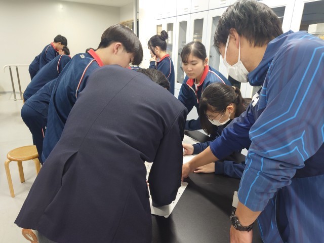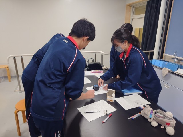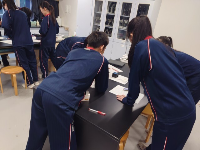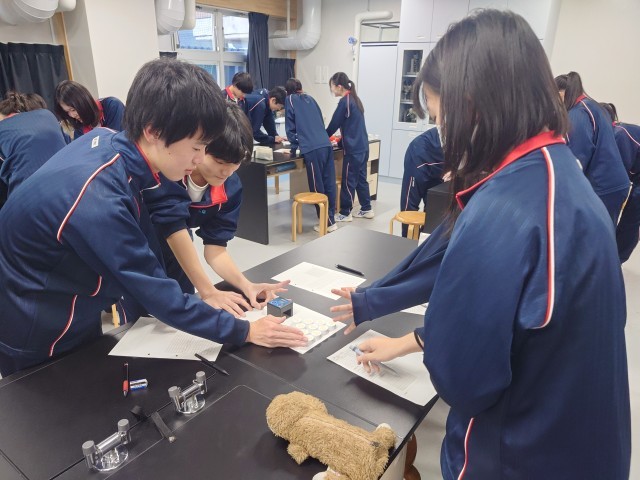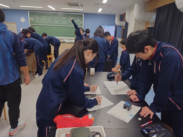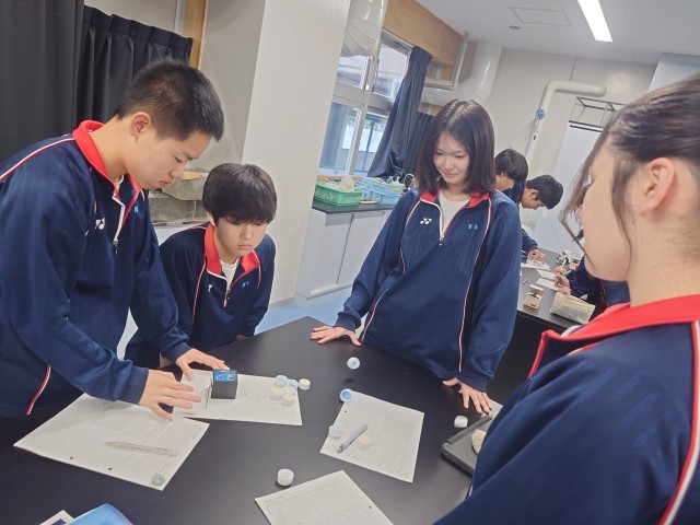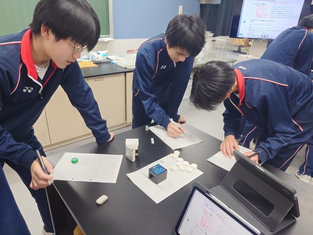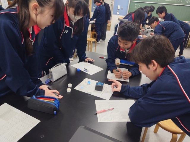 3年生理科の実験中。楽しそうに実験をしていました。
