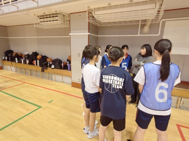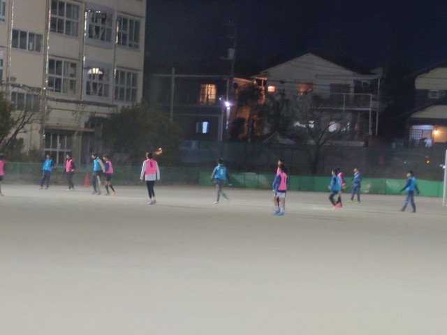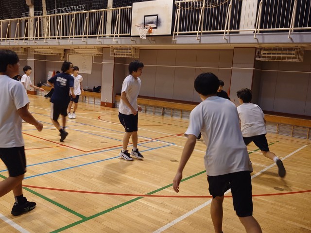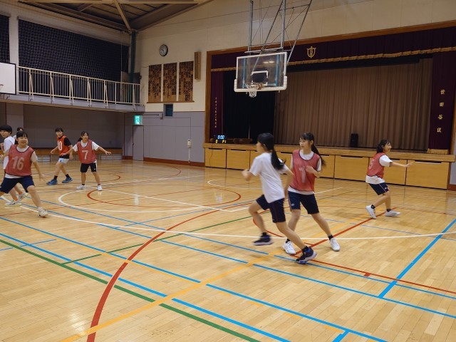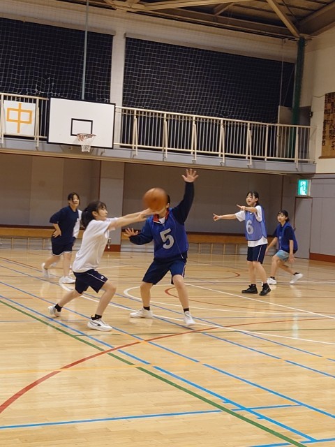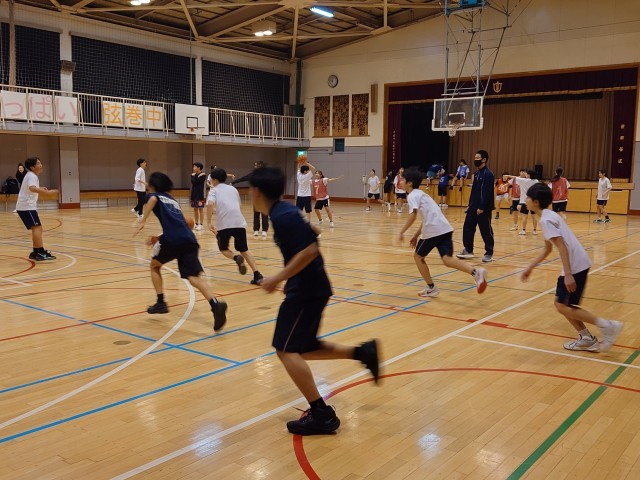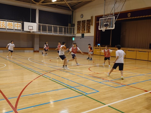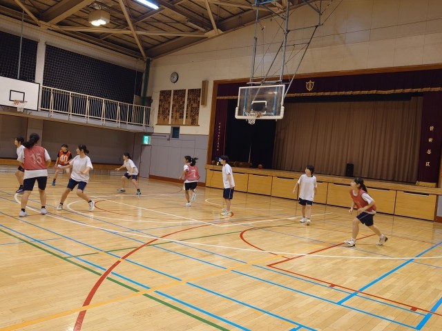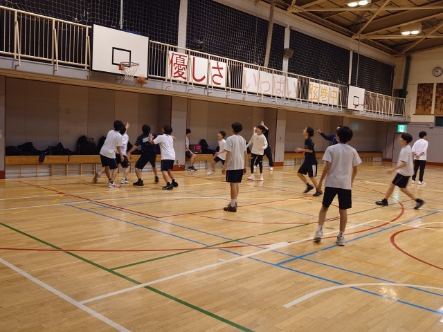 体育館ではバスケットボール部、校庭では、サッカー部が活動していました。