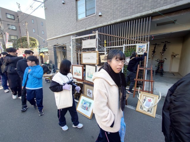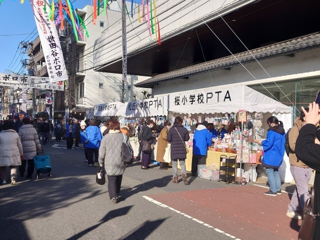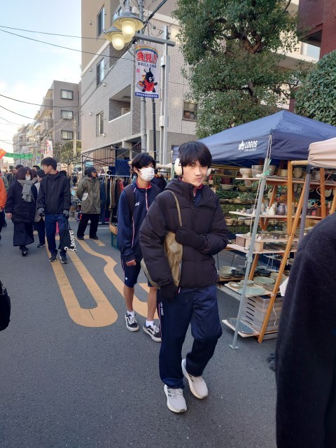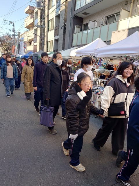 学校を出発、ボロ市通りをまずは全員で散策しました。