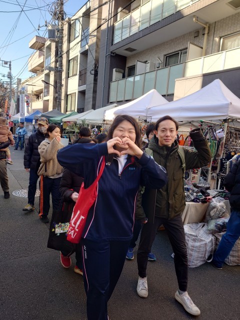 シャーピン食べたよ、ベビーカステラ買ったよ、たこ焼き屋さんで並んでいる姿を見かけました。