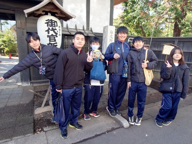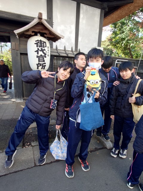 代官屋敷で集合。たっぷりとボロ市を堪能した生徒たちは、満足げに帰ってきました。