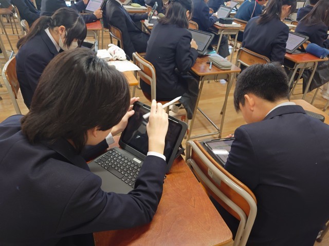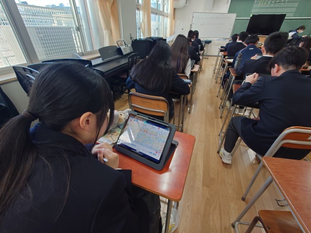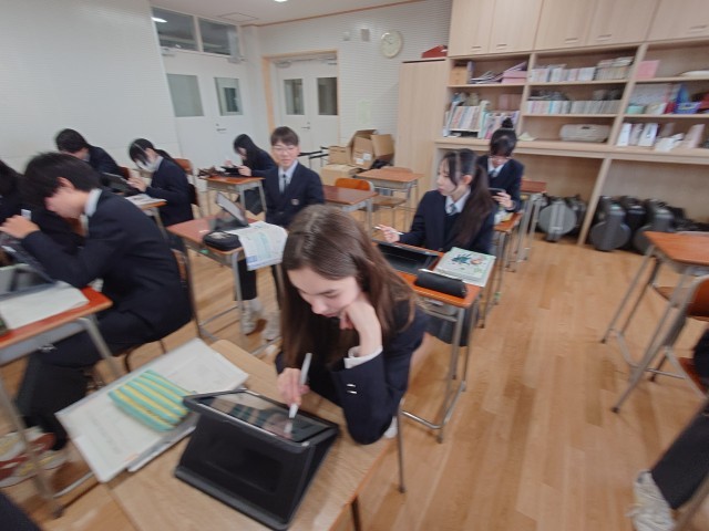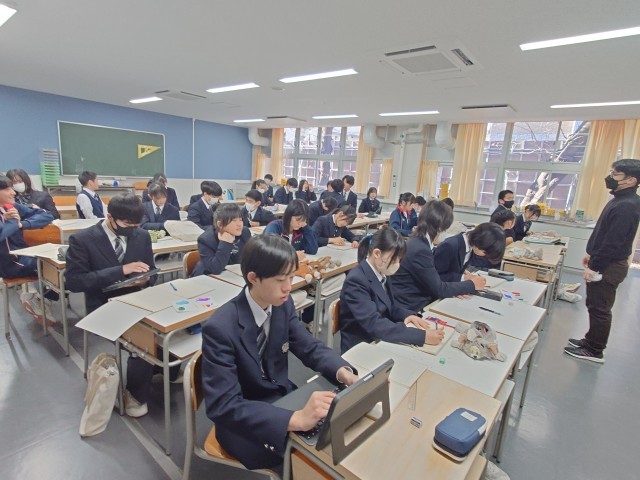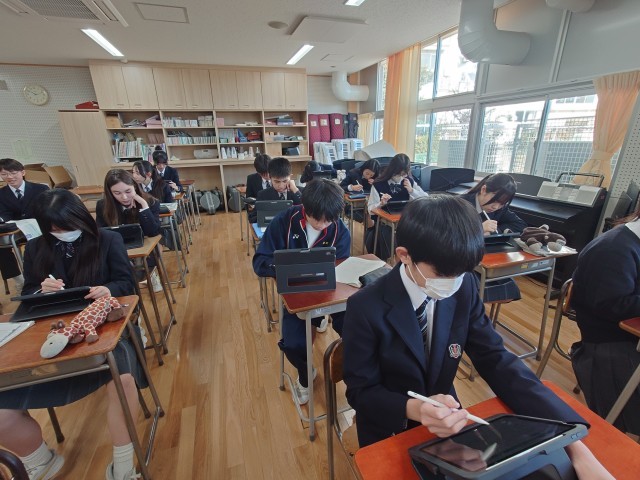 2年生美術の授業、それて音楽の授業を頑張ってます。