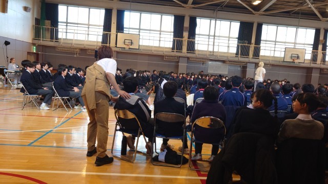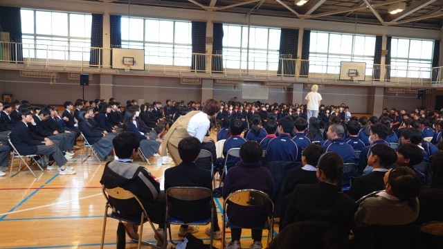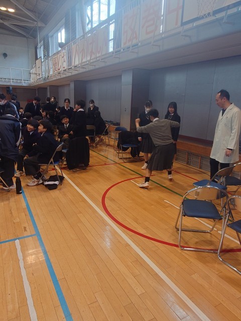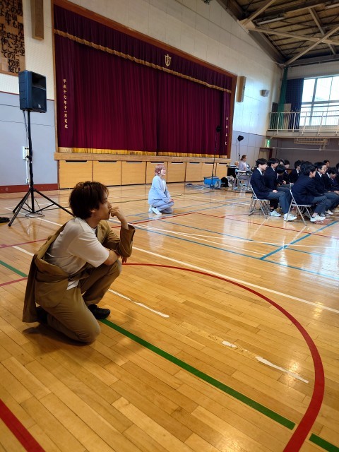 昨年度も同じシーンをやってもらいました。 今年は違うのを用意してくれましたが、どうしても、このシーンを生徒に感じて欲しかったので、やってもらうこととしました。