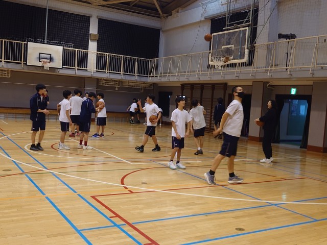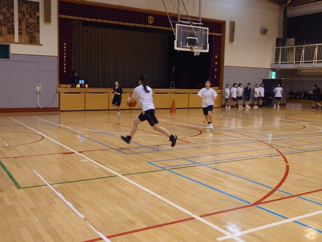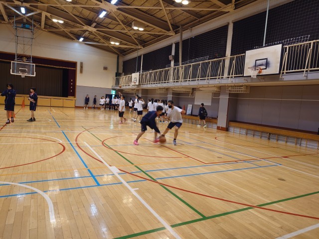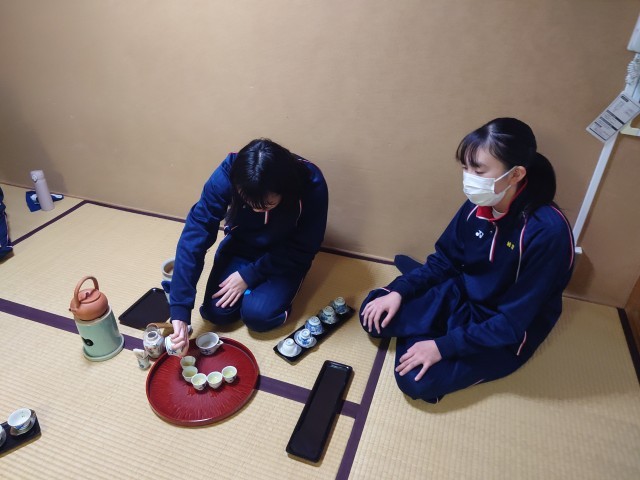 煎茶部では、お茶を振舞っていただきました。体育館では、バスケット部が激しい練習を頑張っていました。