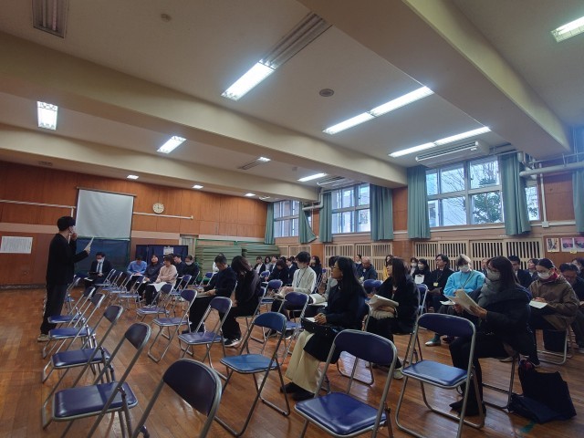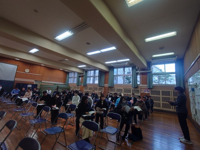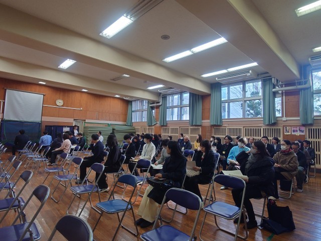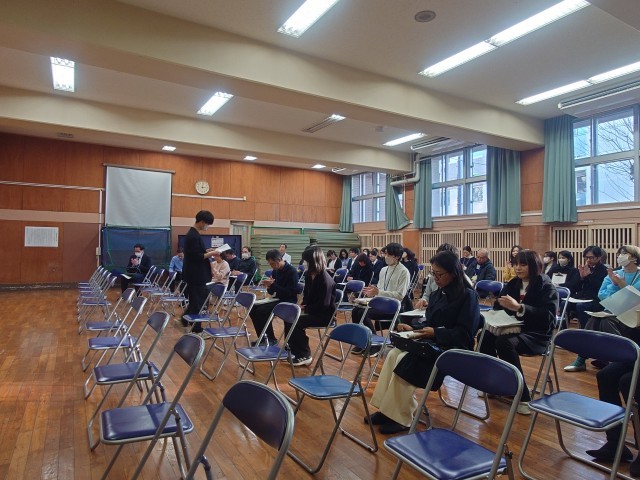 授業参観していただいた保護者の方との意見交換会では、まず、各学年より、授業の説明をしてもらいました。