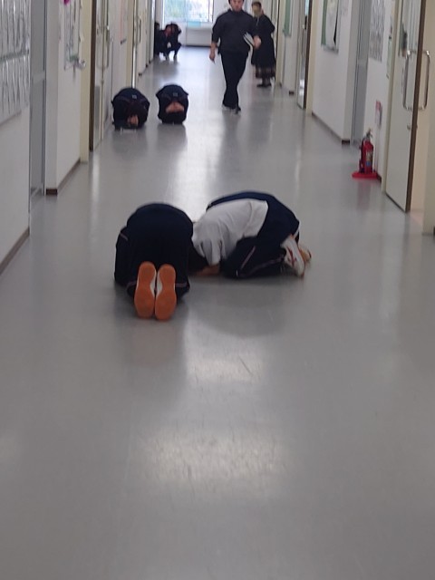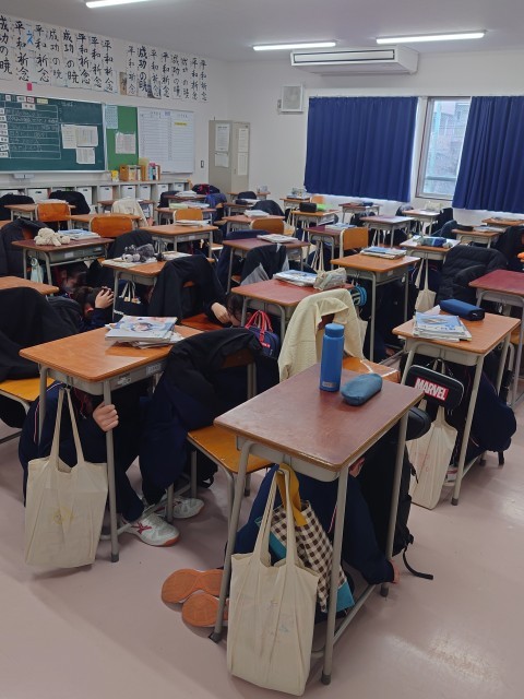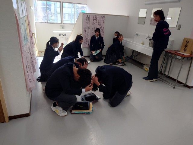 いつどこでも災害(地震)が起きた時に自分で行動できる力をつける訓練です。