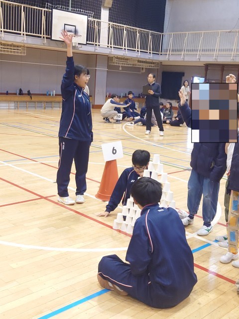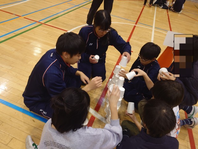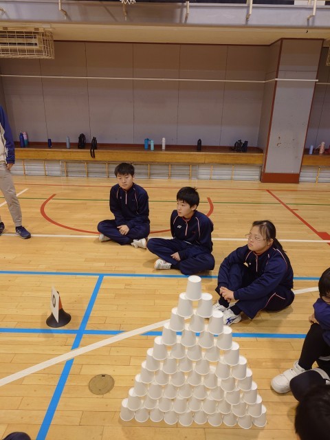 コップ積み上げゲームは、2回戦、3回戦と、だんだん積み上げる時間も短くなってきました。