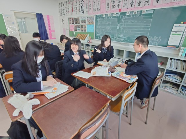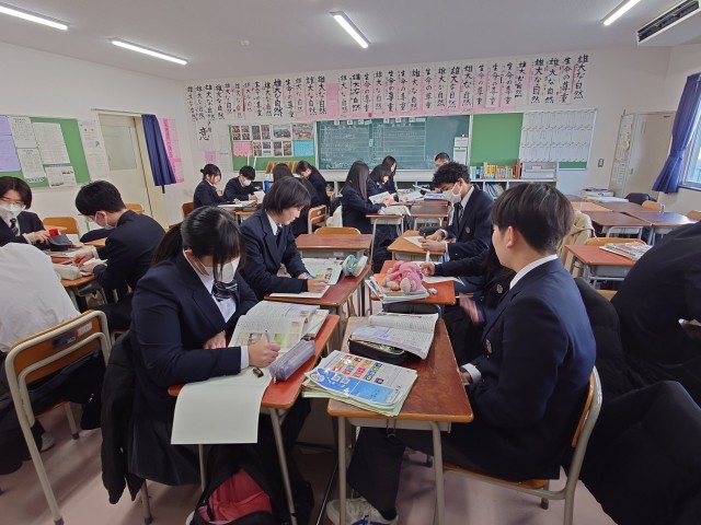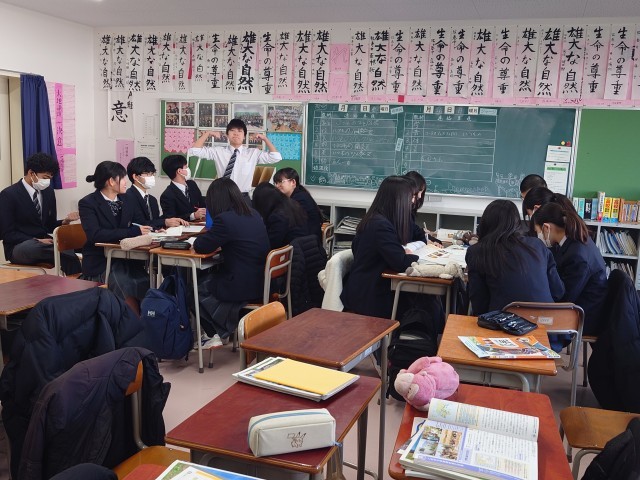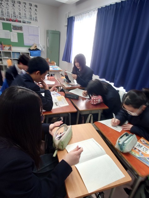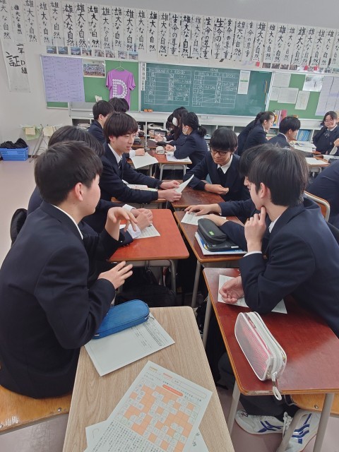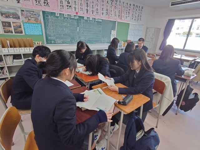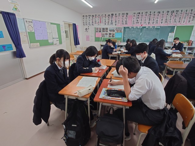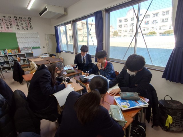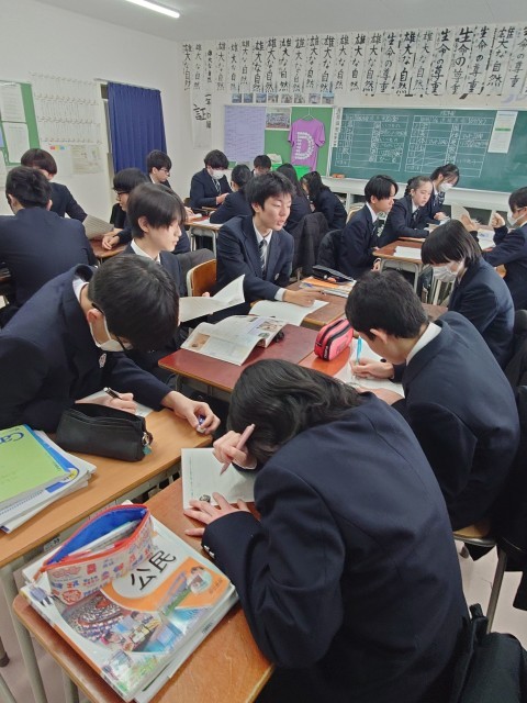 3年生公民の授業。地球社会と私たちの単元を学習しています。