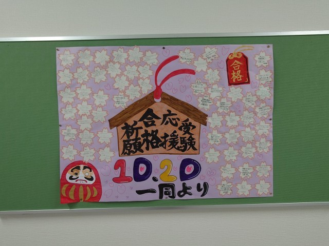 3年生の廊下には、後輩たちの応援メッセージが飾られてました。