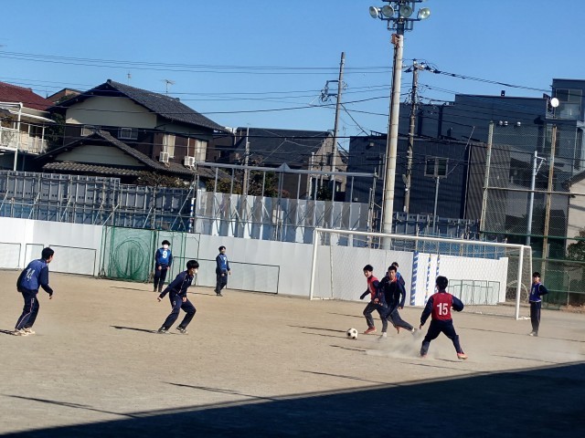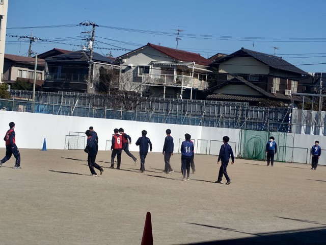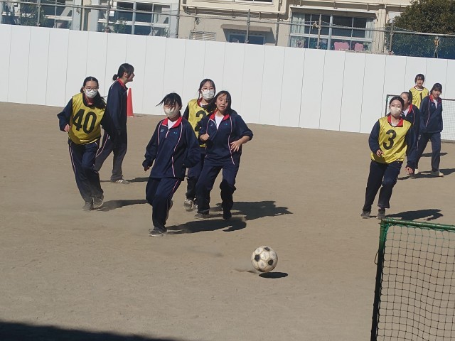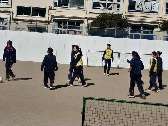 校庭で体育の授業。サッカーをする3年生。いつでもどこでも全力投球の頑張る3年生です。