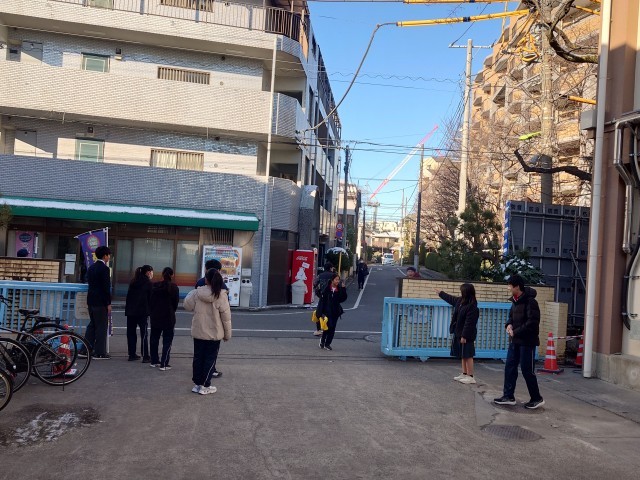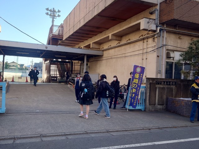 明日から私立の一般受験なので、一日早いあいさつ運動。