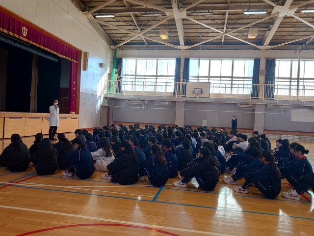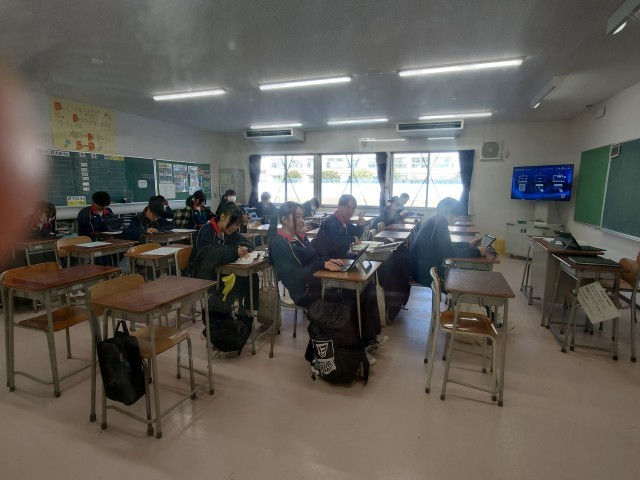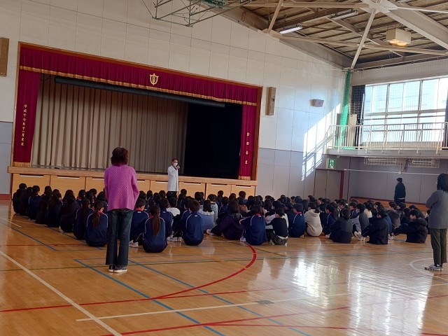 1年生は学年集会。大西先生からのSNSの使い方など、また普段の生活についてお話がありました。