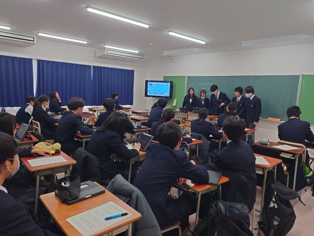 2年生校外学習事後学習。班でcanvaでまとめクラスで発表しました。