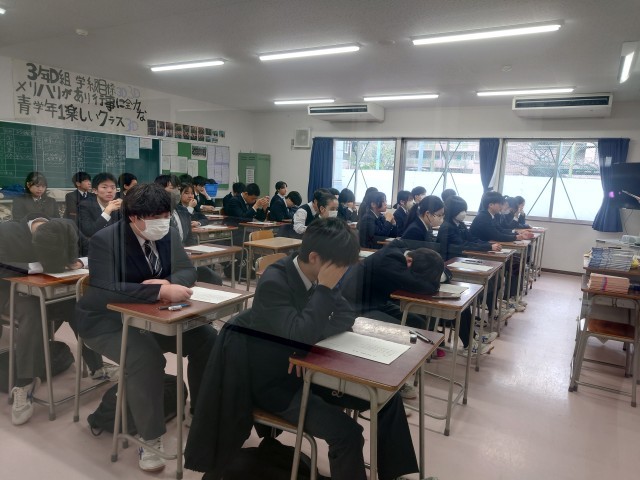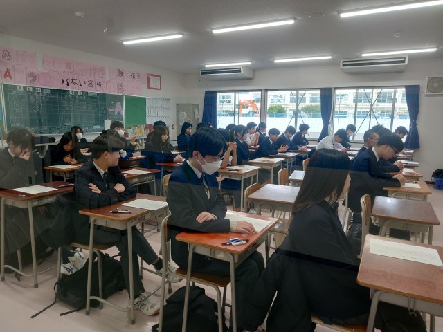 通常学級は、学年末考査二日目終了。