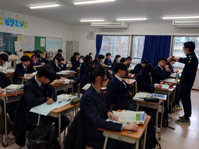 1、2年生の英語スピーキングテストが実施されました。授業をしながら、順番に行いました。