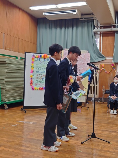 後輩からのお手紙と3年生からのお話が続きます。