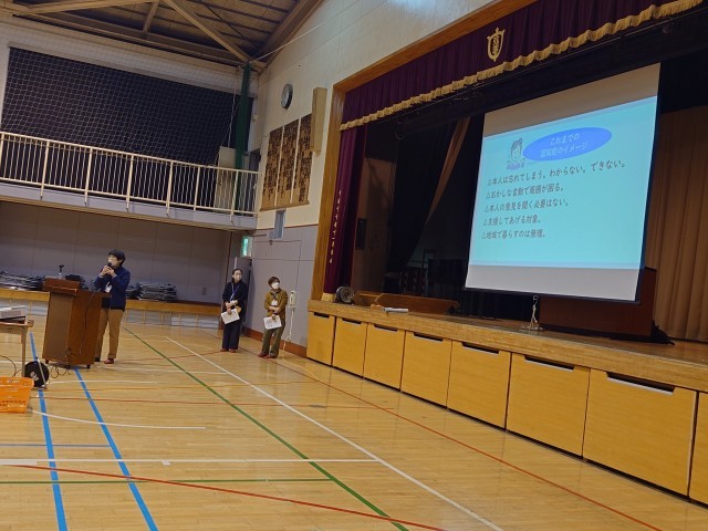 3年生は、上町安心すこやかセンターの方による認知症アクション講座の講演会を開きました。地域にいらっしゃる認知症の方々と共に生きるために、まずは認知症を学ぶことか始めました。
