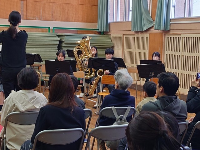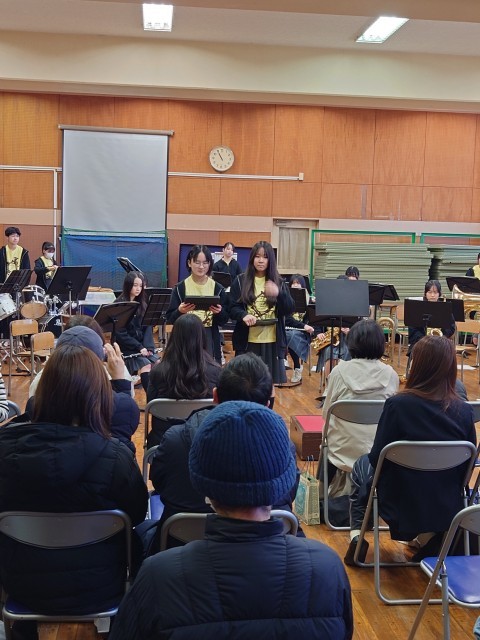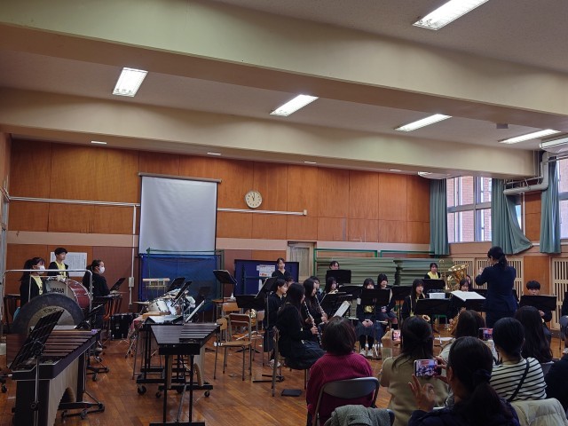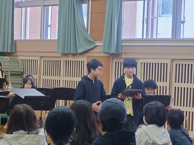第一部の最後の曲の直前で楽器が壊れるというハプニングがあり、第2部で再度演奏をしてくれました。第2部は、来年度のコンクールでの曲を演奏してくれたりもしました。とても上手でした。