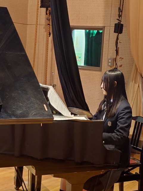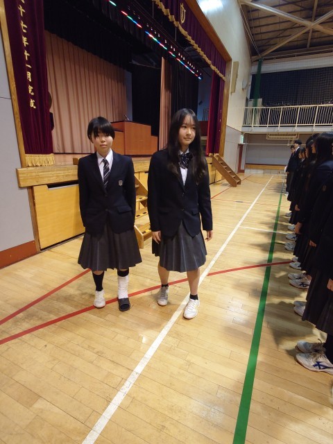 校歌は2年生の2人が指揮、伴奏になります。