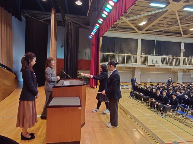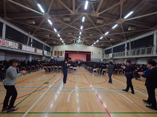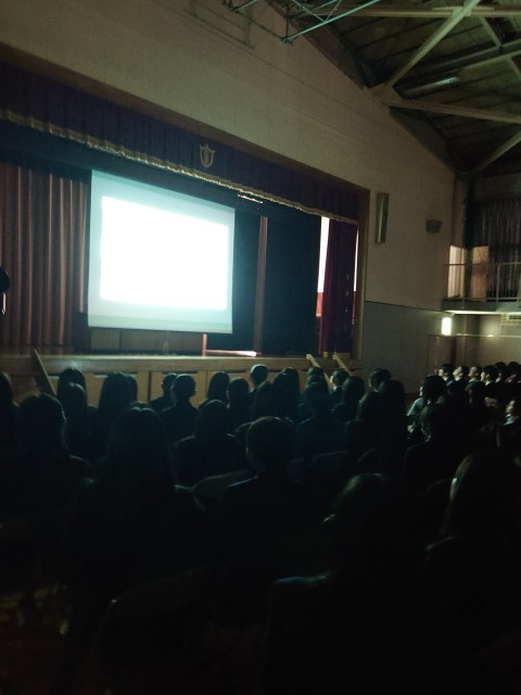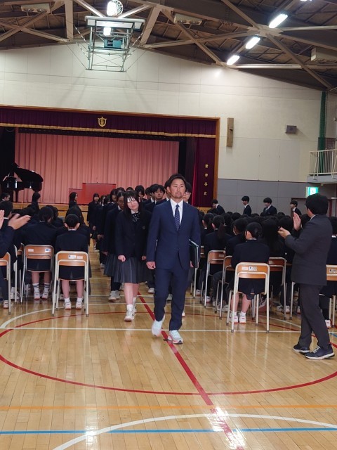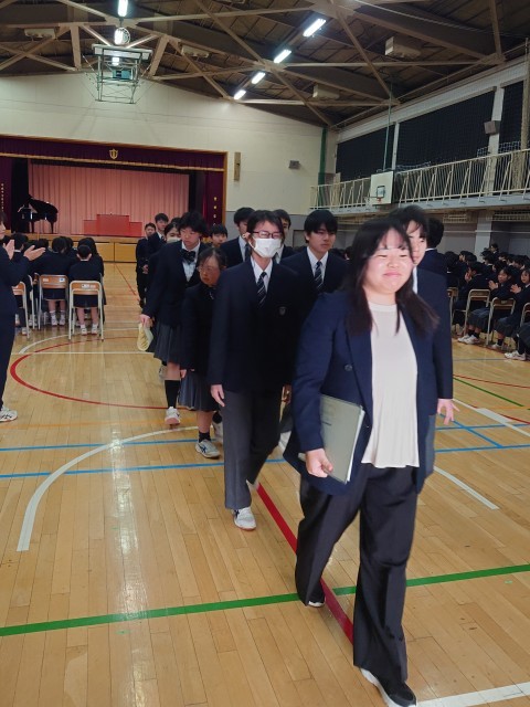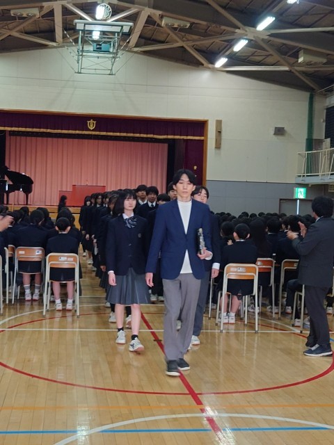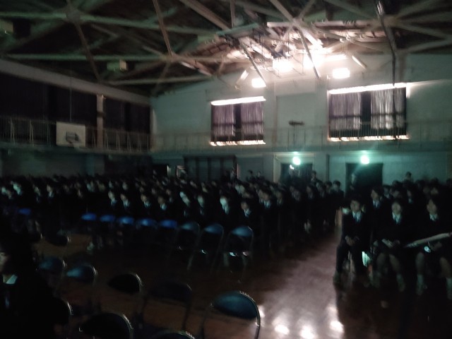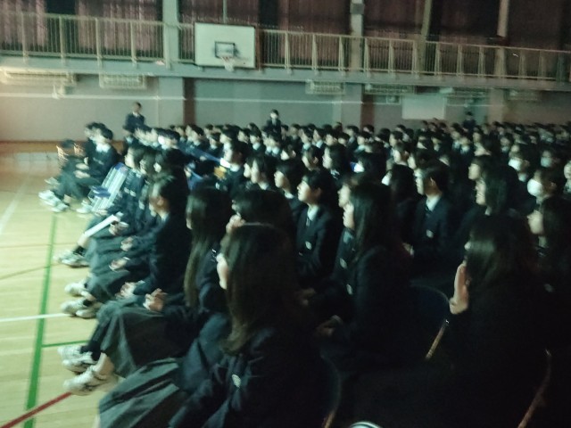 70周年記念動画を全校生徒で見ました。旧校舎の落書き大会、校庭での弦中ダンス、給食、ダンス発表会など、たくさんの学校での思い出、最後は、みんなで作った人文字。大成功でした。