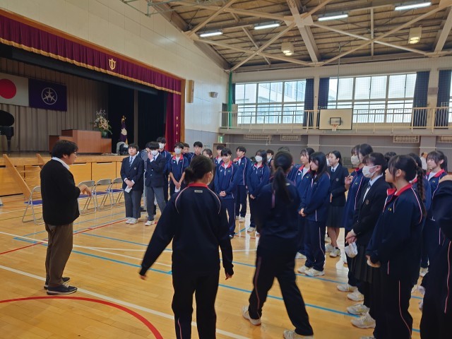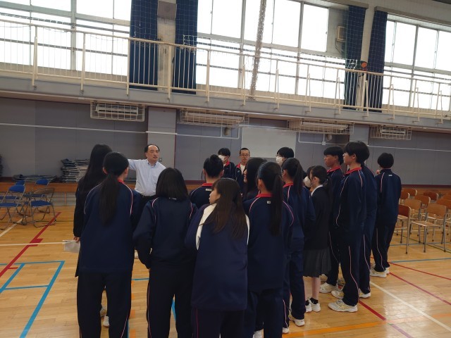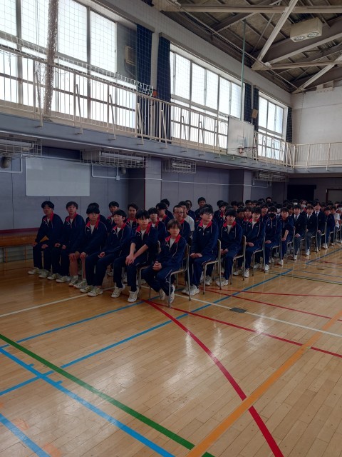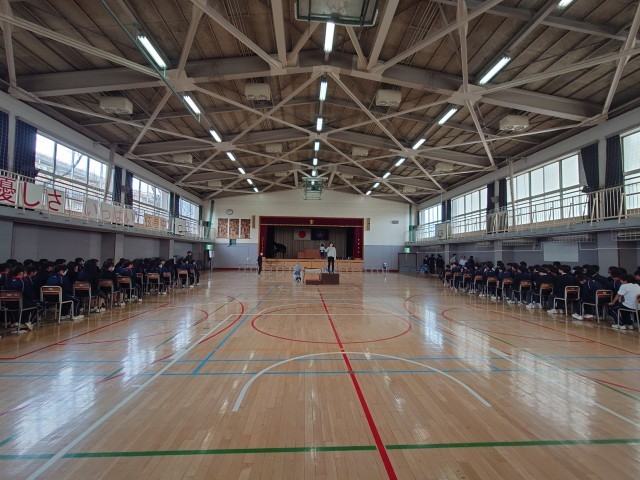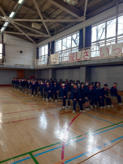 卒業式前日、在校生みんなで会場づくりを頑張ります。