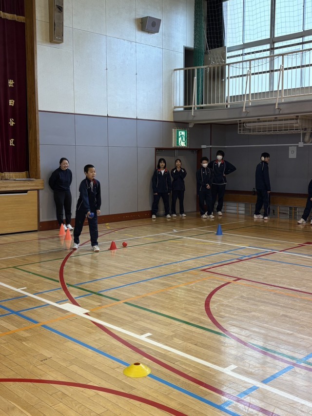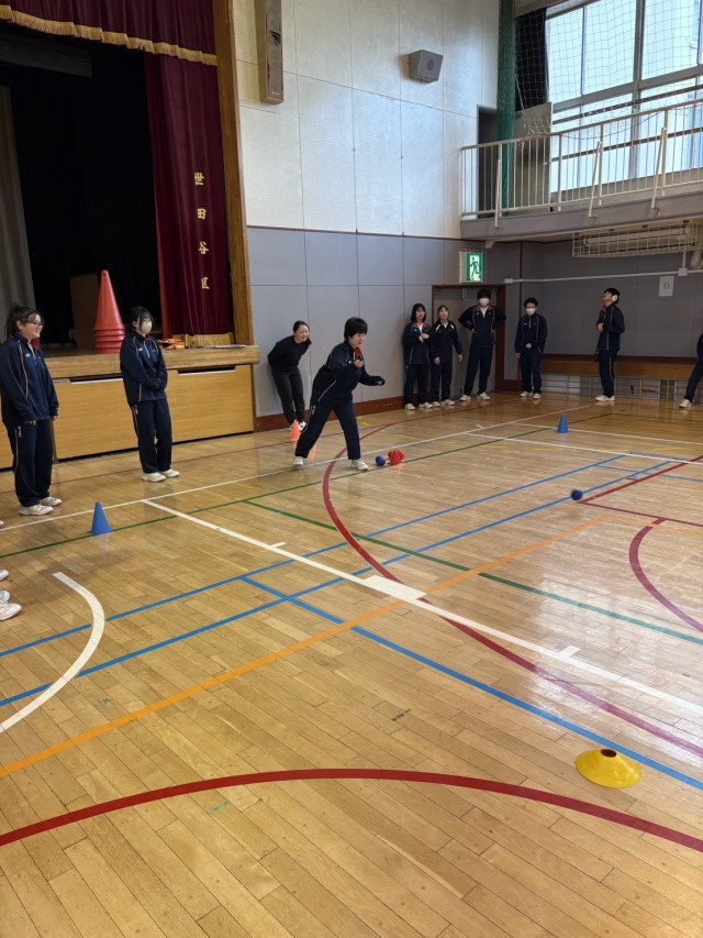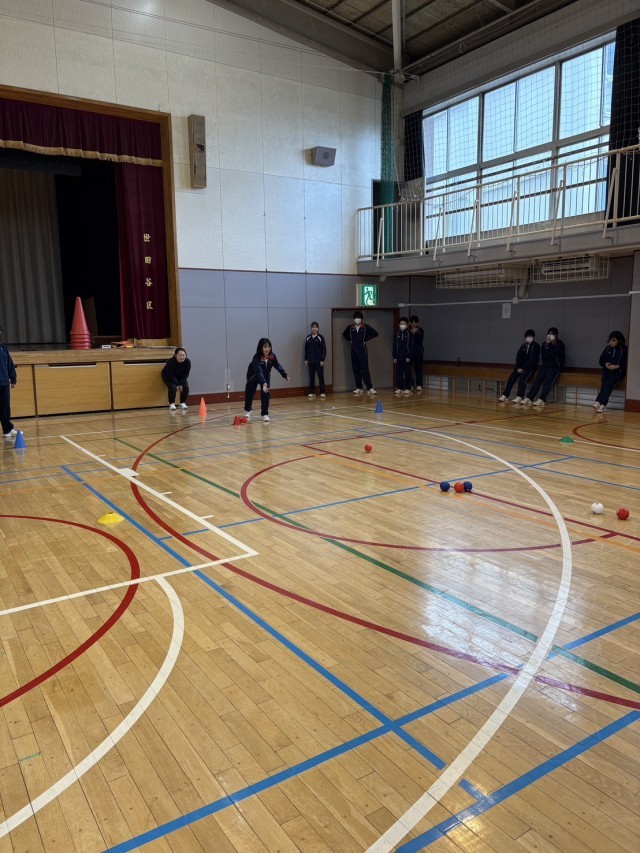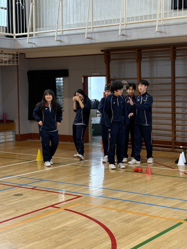 2年生とI組のボッチャ交流会、とても楽しそうです。