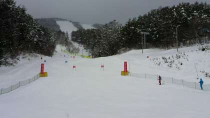 今日は大回転競技です。ゴール付近の様子です。5位以内で全国大会出場です。頑張って欲しいですね!