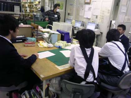 世田谷中央図書館でCDの研磨の仕方を深沢中の生徒と一緒に聞いています。