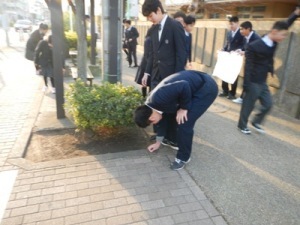 2月14日(木)、美化委員会主催による地域清掃が放課後に行われました。3年生は受験期間のため参加できませんでしたが、1・2年生とI組の生徒がたくさん参加し、箒やちり取りを持って活発に学校周辺の清掃活動を行いました。地域の方々と一緒に清掃活動を行うことで、生徒たちは自分が地域の一員であるということを感じたのではないでしょうか。