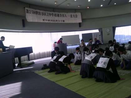 世田谷区立中学校百人一首大会 公開日 2013/03/02 更新日 2013/03/02 校長室より 今日は区の百人一首大会が教育センターにて開催されています。本校代表としてI組の3年生男子2名が出場しています。 いいね(0)