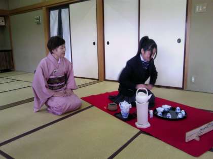 本校の1年生がお茶を入れています。