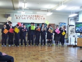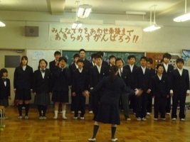 3月11日(月)、I組特別教室において「お別れ会」が行われました。全員合唱「Let's search for tomorrow」「明日へ」のあと、1・2年生からは、今までの感謝の気持ちを込めた「おくる言葉」を、3年生からは弦巻中学校での3年間の生活の思い出とI組の伝統を伝えていきたいという思いを込めて「別れの言葉」を読み上げました。生徒だけでなく、教員・保護者の皆様も、3年生徒の思い出に胸が熱くなり、「旅立ちの日に」の合唱を聴きながら涙ぐむ姿もありました。保護者の皆様のお話もあり、とても素敵なお別れ会になりました。