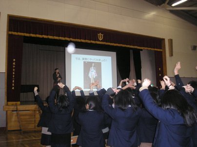 3月9日(土)、栄養アドバイザーの石坂優子先生をお招きし、3年生対象に食育講演会を実施しました。しっかり朝食、食事の3か条(1)彩りよく(2)適量を手で覚える(3)量より質、食の安全の視点からコンビニおにぎりなどの裏表示の成分表を見る習慣、背を伸ばすには「睡眠が大事」といったお話の他、正しい姿勢は健康につながると歩き方の実演もありました。食事は自分で選ぶ自分の材料、何が自分の中に入るのか意識していくことが大事ですと強調されました。保護者の皆様も参観してくださいましてありがとうございました。