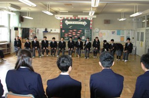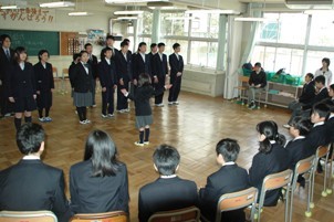 4月10日(水)、I組特別教室において新入生と2・3年生の対面式が行われました。みんなで自己紹介をした後、昨年の合唱コンクールで発表した「Let's search for tomorrow」と「明日へ」を歓迎の気持ちを込めて歌いました。「分からないことがあったら、私たちに聞いてください!」「これから一緒に頑張りましょう!」という先輩たちの言葉に、新入生14名の不安な気持ちは希望へと変わっていったことと思います。これから1年間、みんな仲良く協力しながら、充実した中学校生活を送ってほしいと思います。