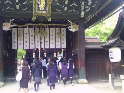 二番目の見学地、北野天満宮に着きました。受験生としては神頼みは欠かせませんね。