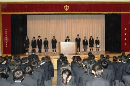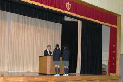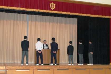 5月22日(水)、第2回生徒会朝会が行われました。生徒会役員や各専門委員会からは「体育大会に向けて頑張ろう!」「掃除用具を大切に使ってください」という呼びかけや、「校外学習や修学旅行に向けての取り組み」「早寝、早起き、朝ごはんのポスター製作」「図書だよりの作成」などの活動報告がありました。また、陸上部と女子テニス部の表彰が行われました。表彰された皆さん、本当におめでとうございます。